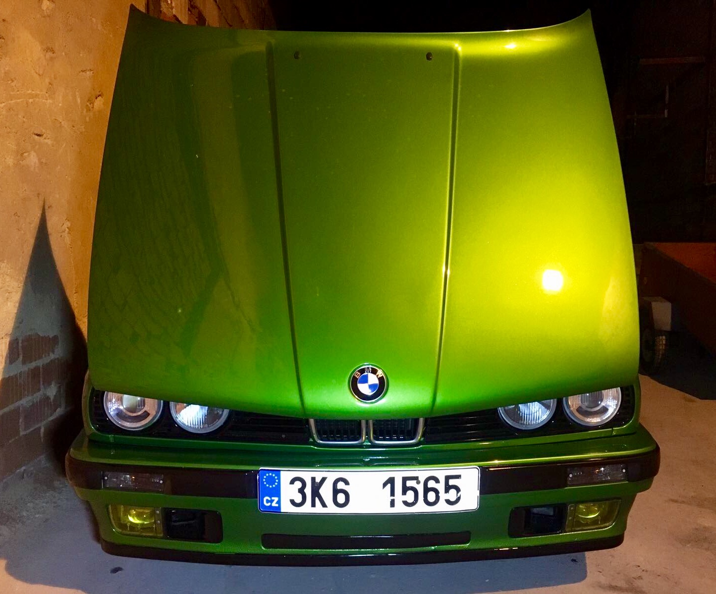 Lak byl původně červený , pak ho jeden z bývalých majitelů lákl dost odflákle do žlutý, a loni dostala nový celolak do zelené se žlutou perletí. Lak je krásný, nalakovano taky krásně. Motorový prostor, kufr a kapota zevnitř však zůstaly v původní červené se zbytky žluté. Barva není z palety bmw. Nebyl záměr z toho dělat leštěnku. Nalakovány jsou i lišty (krom shadowlajnu) , maska, zadní plast pod značkou a lízo do černé lesklé.