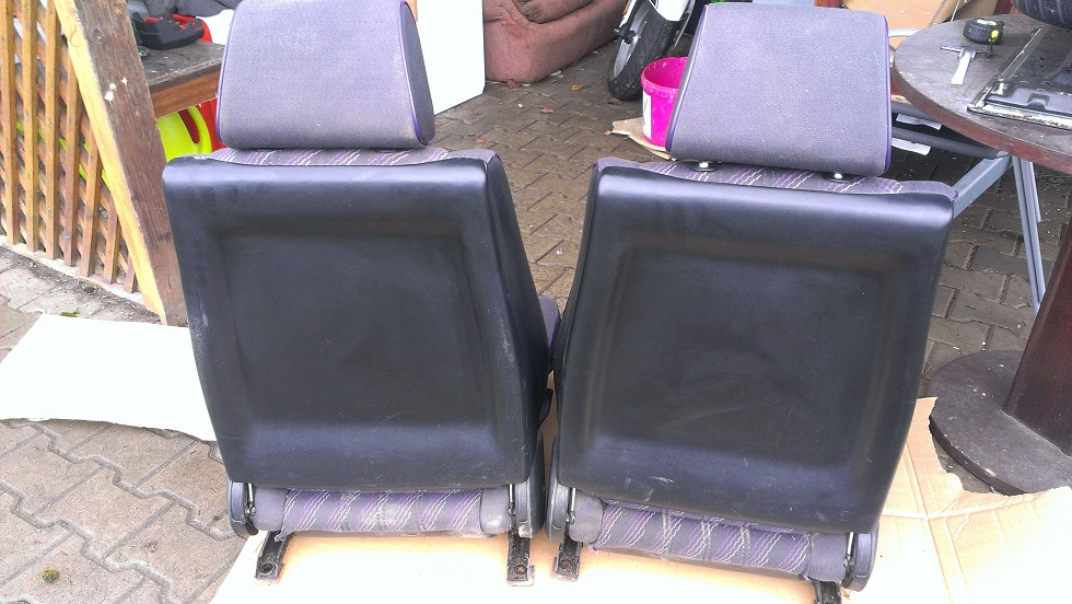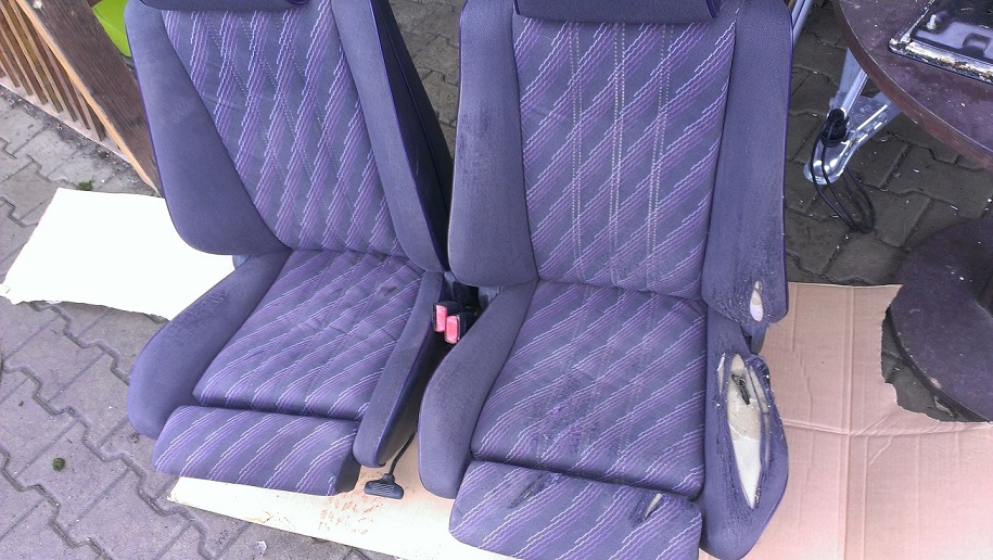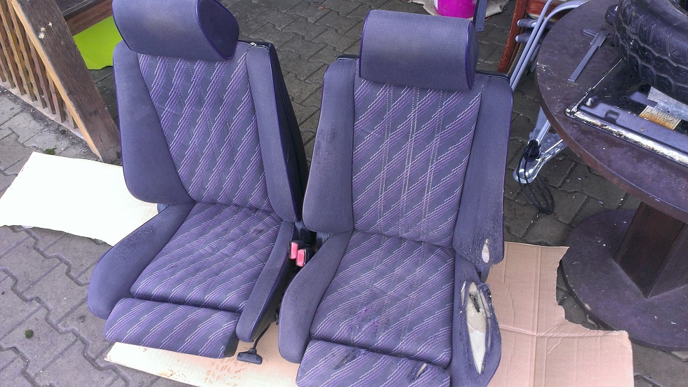 Sportzitze design edition bmw e30,sedan touring,řidičův potrhaný bok,spolujezdcova celkem ok,ale už je také načatý bok -(nitě).Jinak funkce jsou všechny funkční.Možno po dohodě zadek (touring) a tapce ten sám vzor.Sedačky jsou otřené vlhým hadrem od prachu,proto vypadají strakatě.Jinak jsou čisté. Cena 3500kč