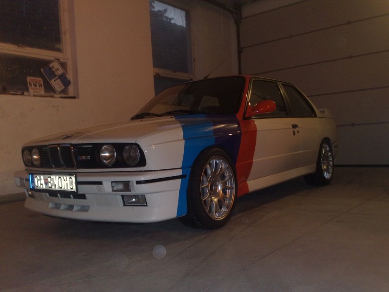Dneska dvě E28 a E30 M3 bílá se slovenskou spz na vozíku za dodávkou.