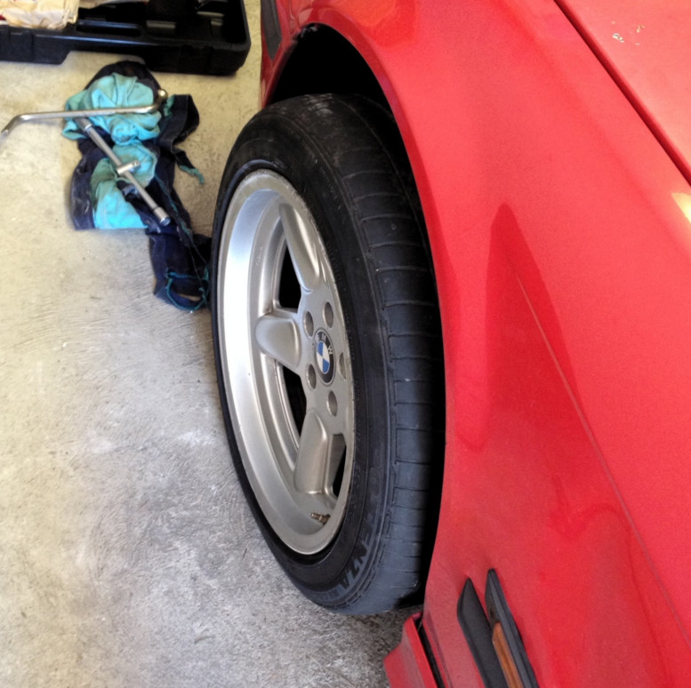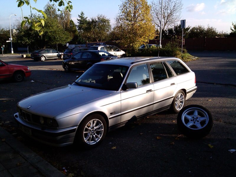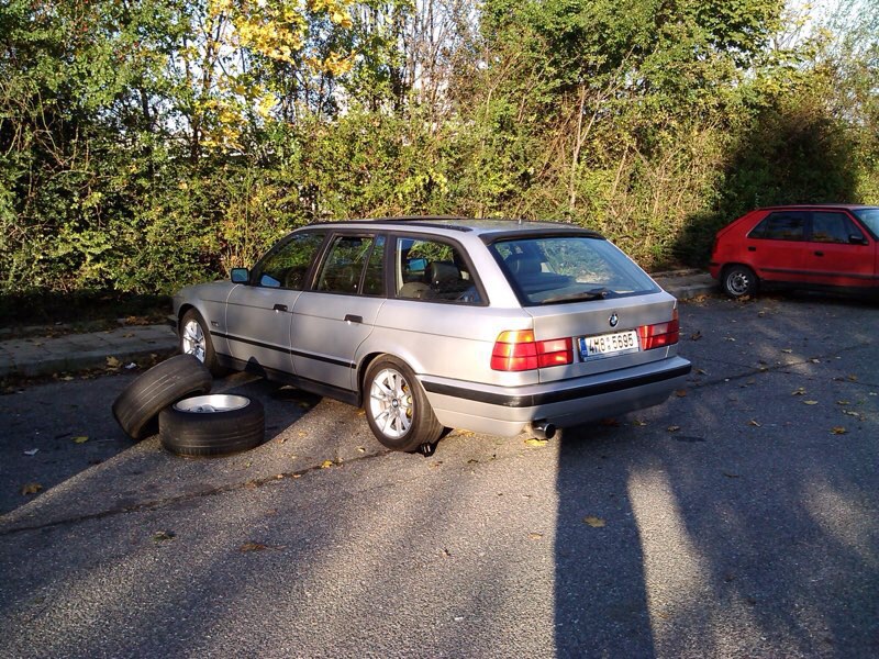 V prípade výmeny len niečo kvalitné a zaujímavé17" alebo 16", nezvárané, rovné a može byť aj trochu oparkované (originál BMW e34,39,38,32,36,46, bbs, OZ, compomotive, AZEV...) Gumy sú vpredu 235/45R17 Continentál tak na presun ale inak by som na tom už nejazdil, vzadu 245/45R17 GoodYear vzor pekný ale už stará guma takže sú k diskom grátis. Disky sú inak rovné, akurát špinavé, predky jemne oparkované, zadky s drobnými škrabancami.